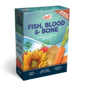 Fish Blood & Bone Natural all purpose fertiliser Doff Fish Blood & Bone is an organic based all purpose fertiliser which provides the nutrients for the growth of healthy plants and to encourage flowering.